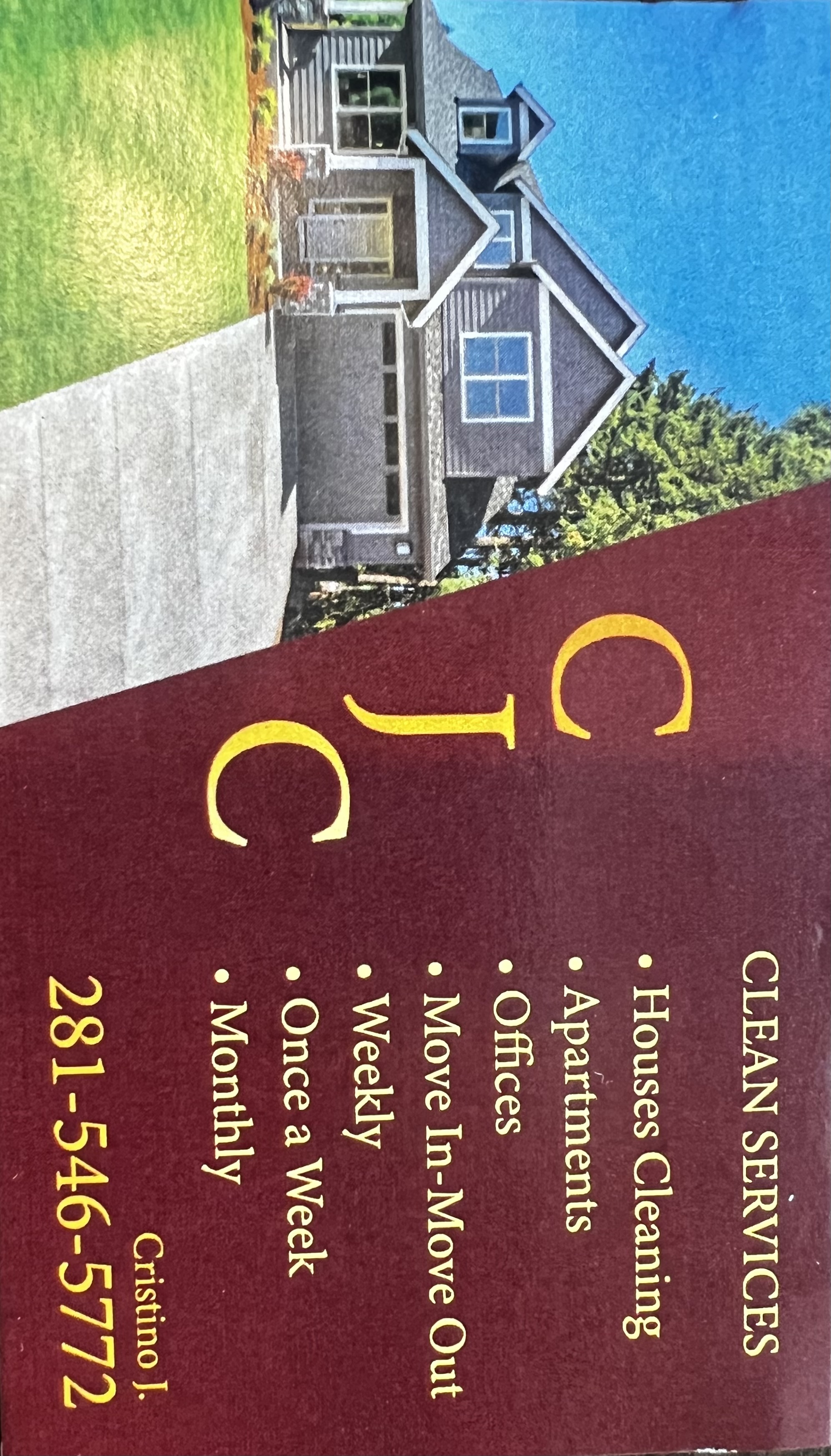 Servicing in: House cleaning Apartments Offices Move in/out Deep cleaning Weekly Bi-weekly Monthly Hi my name is Cristino jimenez. We are a new company. we are new but with experience and responsibility, honesty and integrity is our cover letter as well as a guaranteed service. Hola mi nombre es Cristino jimenez. Esta es una nueva compañía. somos nuevos pero con experiencia y responsabilidad la honestidad e integridad es nuestra carta de presentación además de un servicio garantizado.
